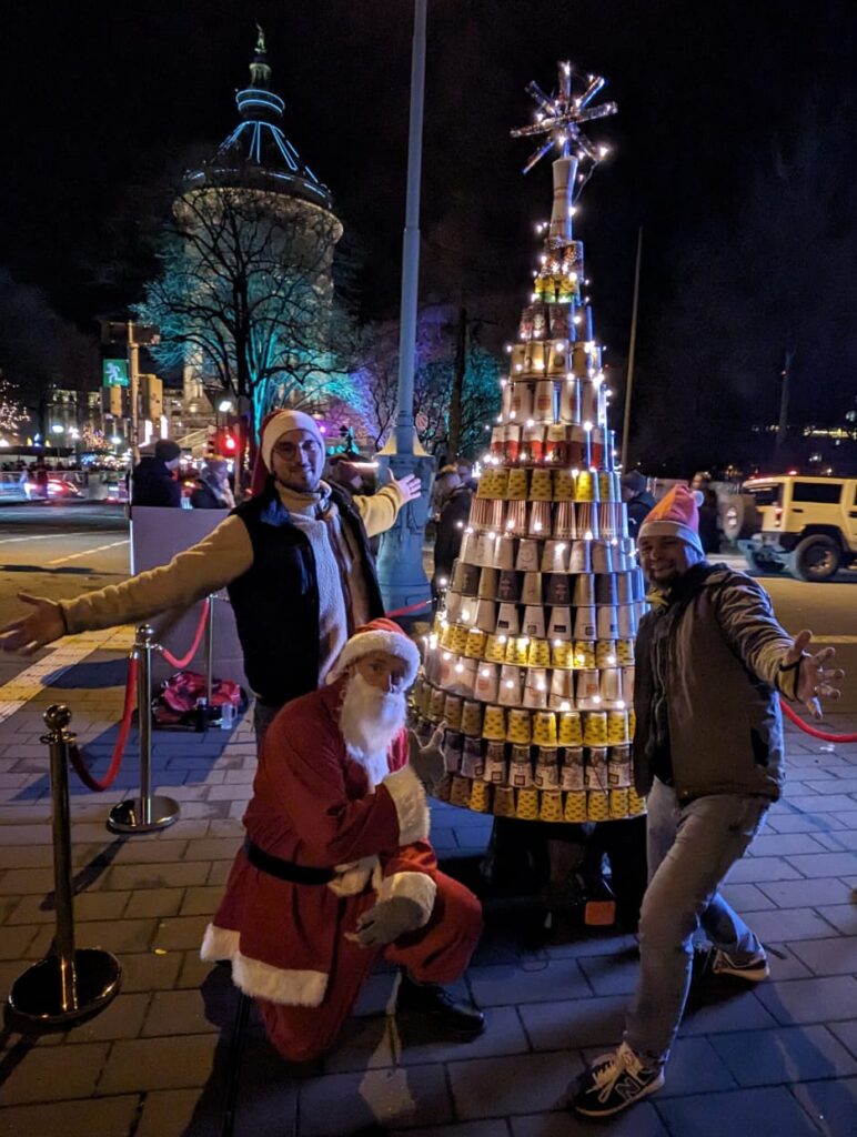 Mit einem wunderschön vorgetragenem Gedicht von unserem Weihnachtsmann und etwas weihnachtlicher Musik konnten wir schließlich unseren geliebten CupMess Tree der Öffentlichkeit und Presse präsentieren.